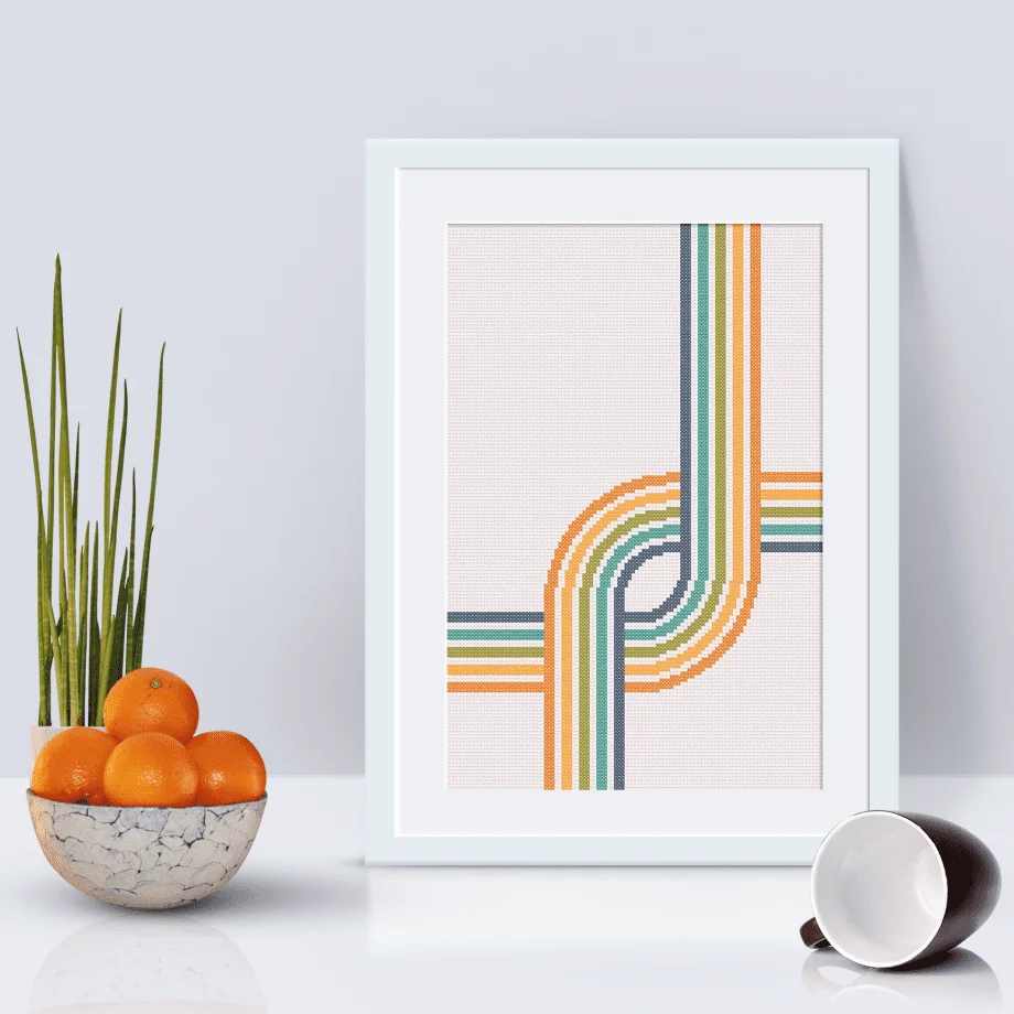 This groovy pattern is styled as a colourful abstract 1970’s geometric picture. It only uses 5 colours, is easy to follow, and is perfect for anyone who is new to cross stitching. It is great for anyone who is looking for a fun and easy project to work on.